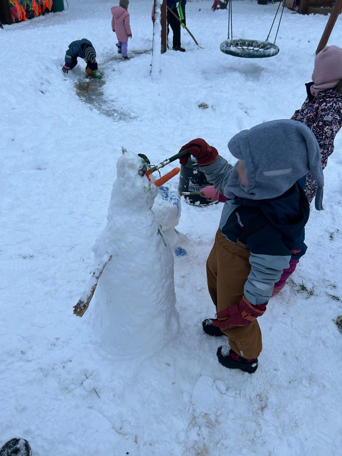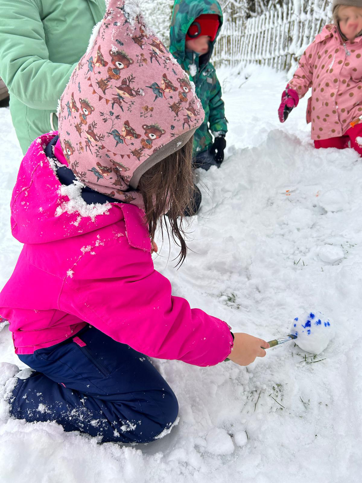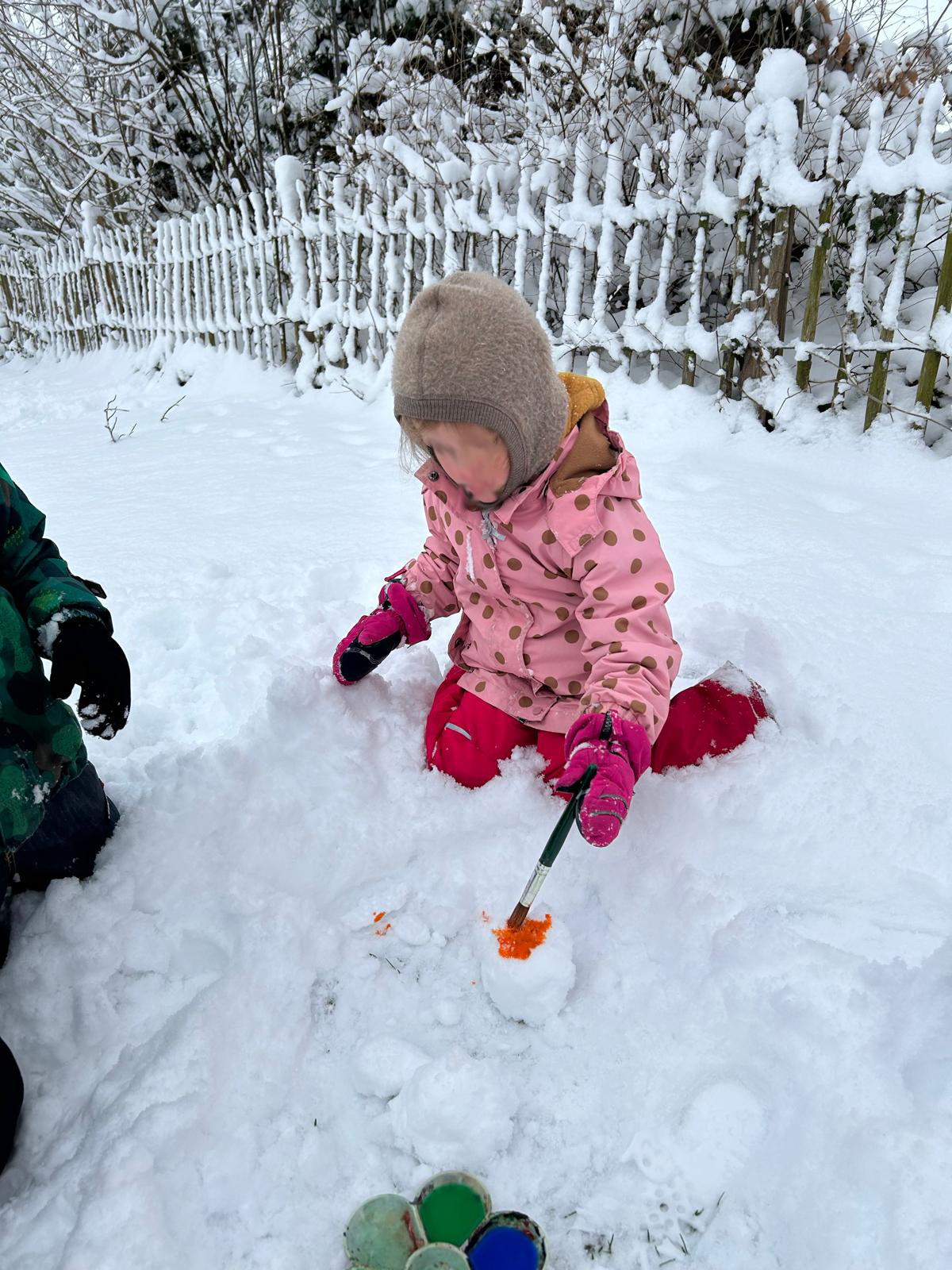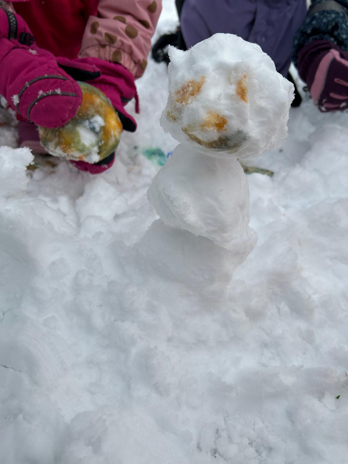 Unsere kleinen Kinder(t)räumer haben sich sehr über den Schnee im Januar gefreut. Es wurde im Schnee getobt, Schneemänner gebaut und selbst gebaute Kunstwerke wurden kunstvoll bemalt. Alle hatten sehr viel Spaß und würden sich über mehr Schnee freuen.