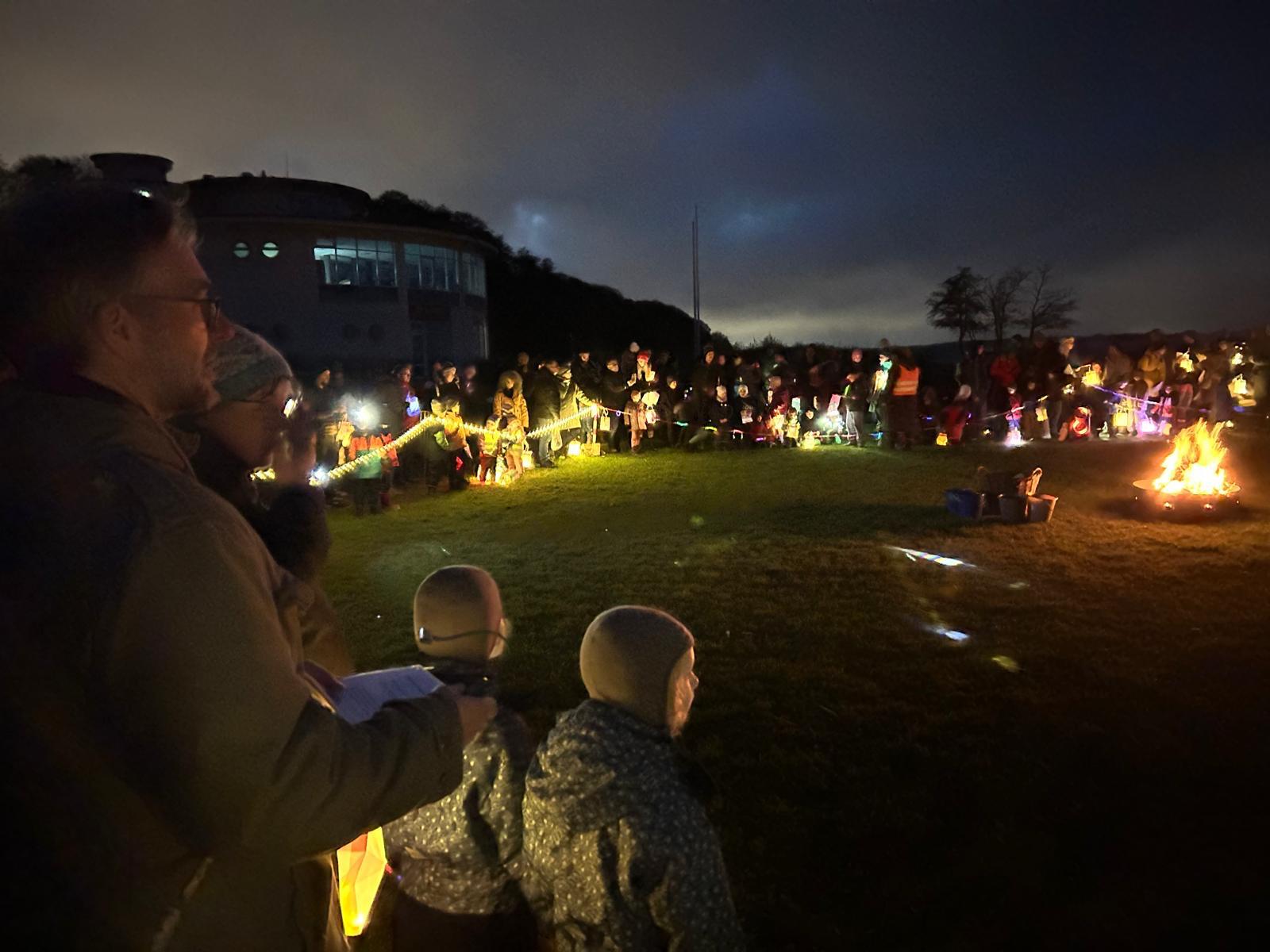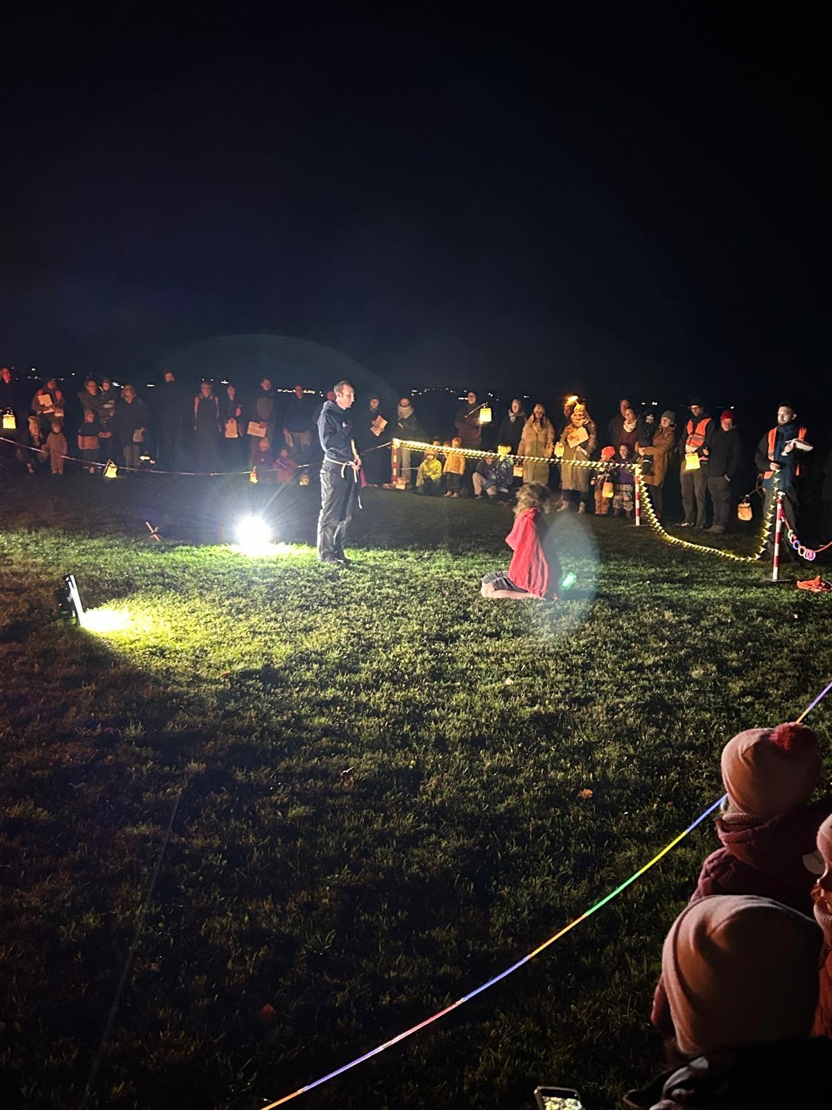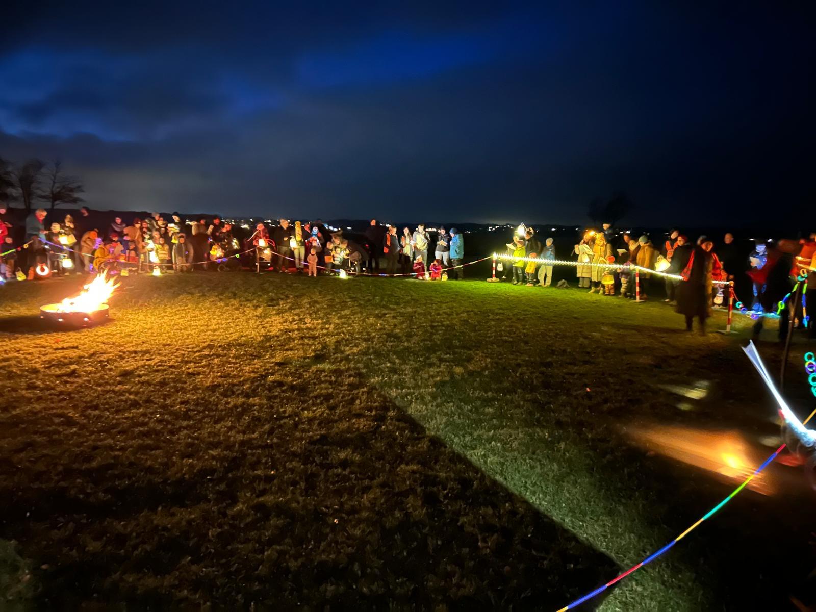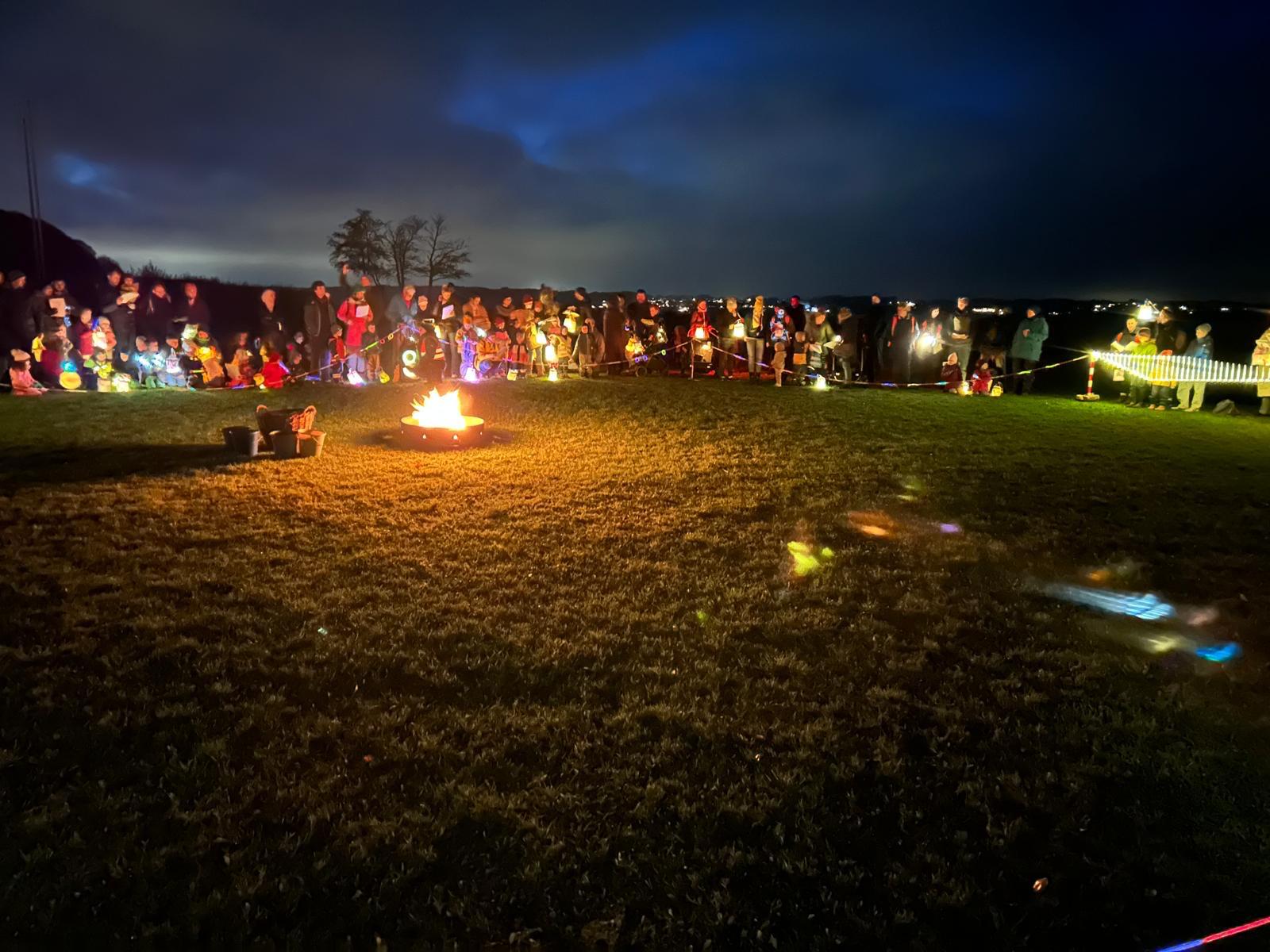 Dort erwartete uns eine wunderschön geschmückte Fläche mit Lichterketten, einem großen Lagerfeuer, einem St. Martinsspiel, das das Kita-Team mit viel Herz und Humor aufführte, und natürlich ganz viel Gemeinschaft und Wärme.